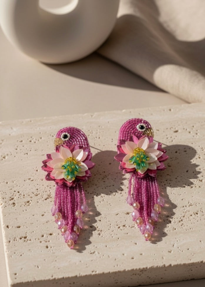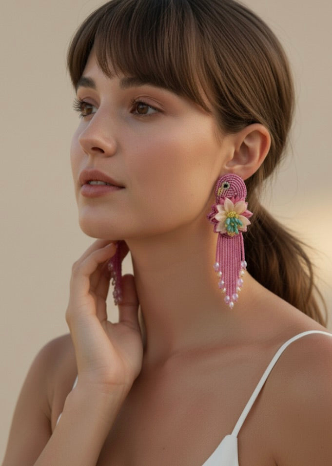 Handcrafted In A Vibrant Mix Of Purple, Green, And Gold Colors Fly high with these feathered beauties! The Fiesta Fringe Beaded Earrings by AMERICA & BEYOND are all about vibrant charm, complete with a sequin flower at the center and heavy fringes that add movement and texture. Handcrafted in a mix of purple, green, and gold, they bring the perfect blend of colors to elevate your look. With a secure back pin for wear, these earrings are ready to take flight and add a splash of fun to your style!