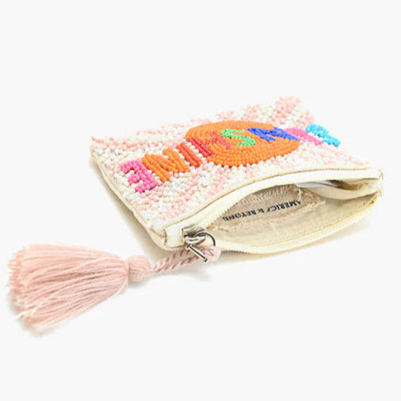 Get your daily dose of sunshine with our Sunshine and Sand Coin Pouch by AMERICA & BEYOND! Each pouch has a front in playful beads and "Sunshine" woven into its fabric, adding a cheerful twist to your essentials. They come equipped with a convenient top zip closure and a charming tassel puller. Crafted from durable hand woven jacquard, they ensure both style and functionality. Compact yet spacious enough, they're ideal for keeping your coins secure while spreading sunny vibes wherever you go!