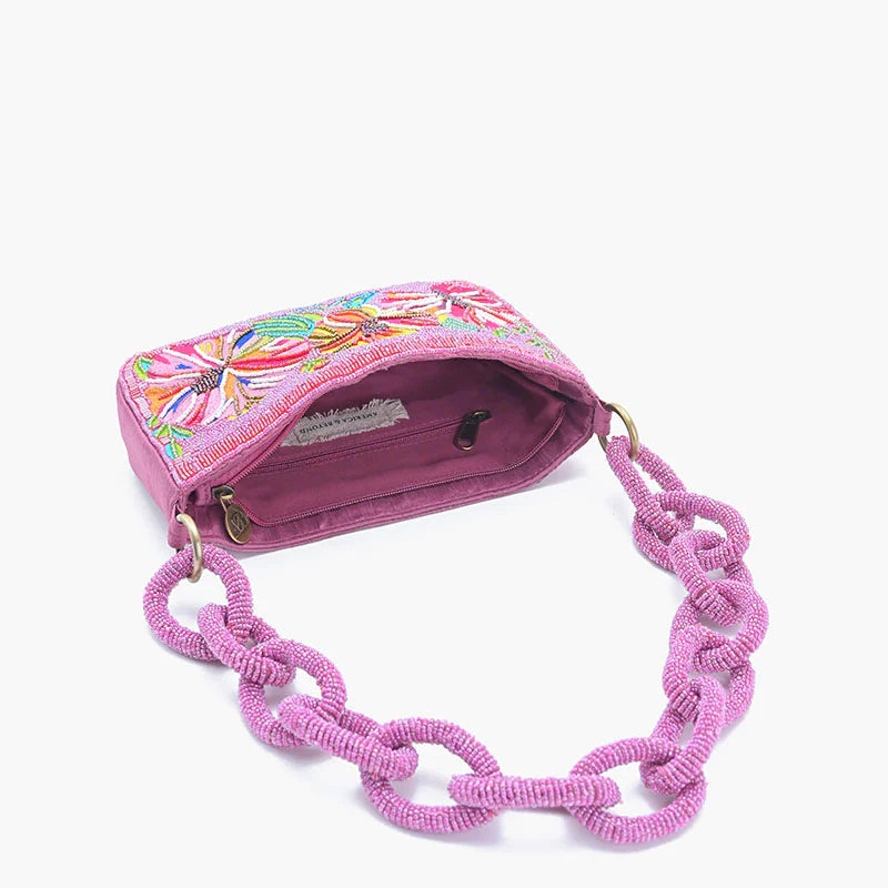 Glow and go with the Tropical Bloom Beaded Shoulder Bag by AMERICA & BEYOND, your new best friend! Adorned with intricate beadwork, it’s a testament to artisanal craftsmanship. The bag features an attractive sling for comfortable carrying and a zip pocket to keep your essentials secure. Perfect for adding that final touch of glamour, this bag is all about making your shine stand out!