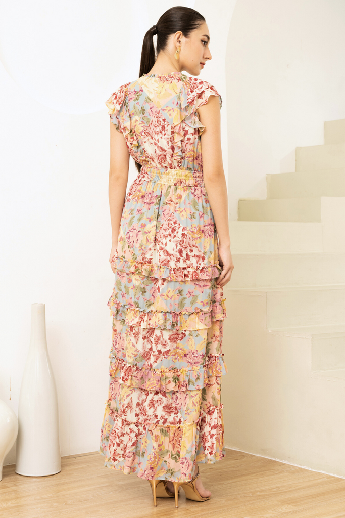 Cecile maxi floral dress has it all - a comfy elastic waistband, a ruffle v-neck, and a button-down design with charming ruffle skirt details. Get ready to make heads turn and feel absolutely fabulous in this must-have dress.