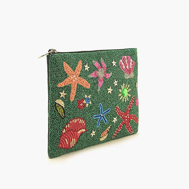 America and Beyond Emerald Sea Life Beaded Top Zip Clutch $118