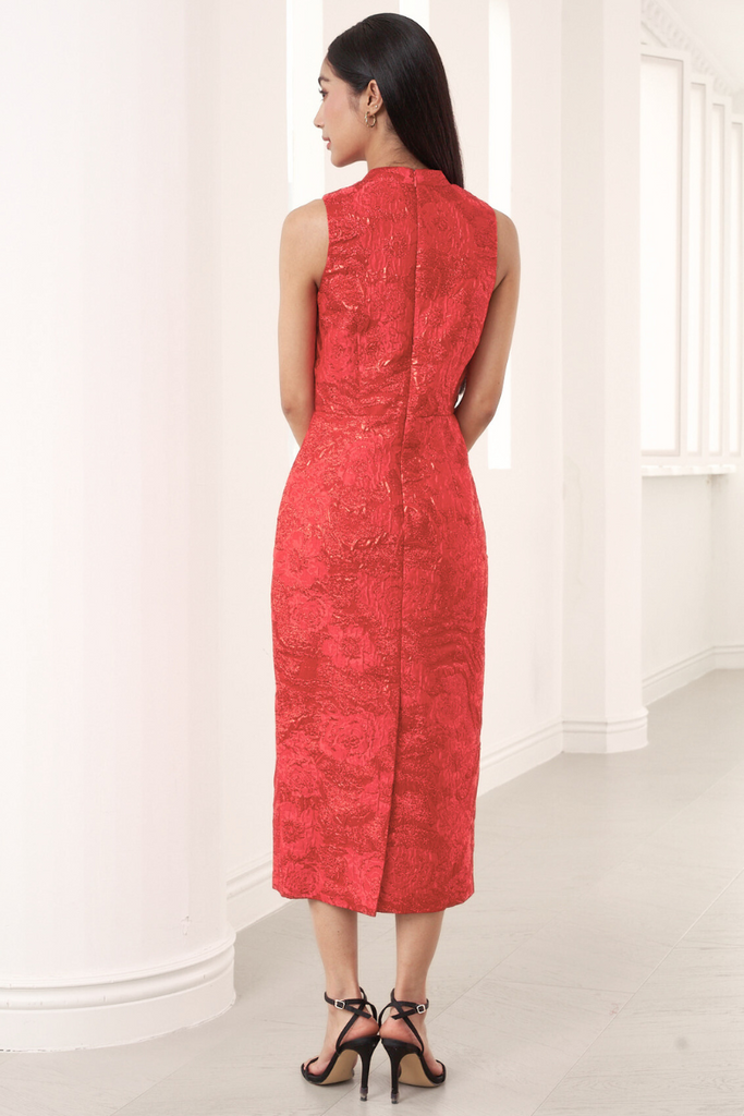 STYLE#: DR-21768 in LUNAR BROCADE RED - LUNBR- S25