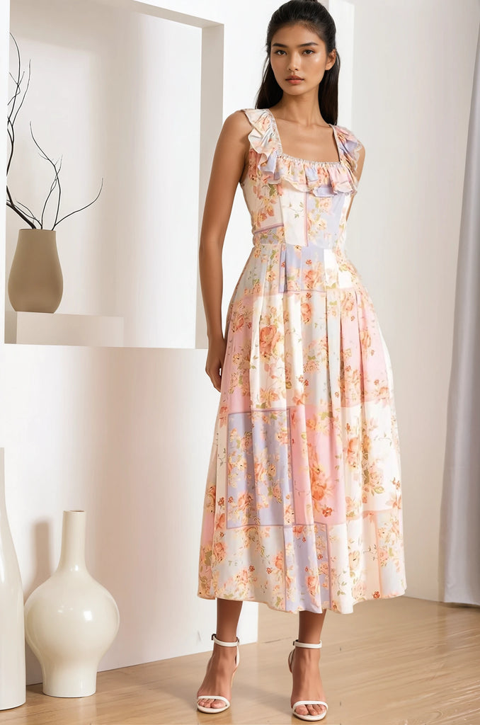 Introducing the Ari Dress – your instant mood lifter! With its playful ruffle details framing a charming square neckline, this dress speaks volumes in style and sophistication. Designed for the modern woman who isn't afraid to make a statement, our Ari Dress serves up a dose of cheer with every twirl.