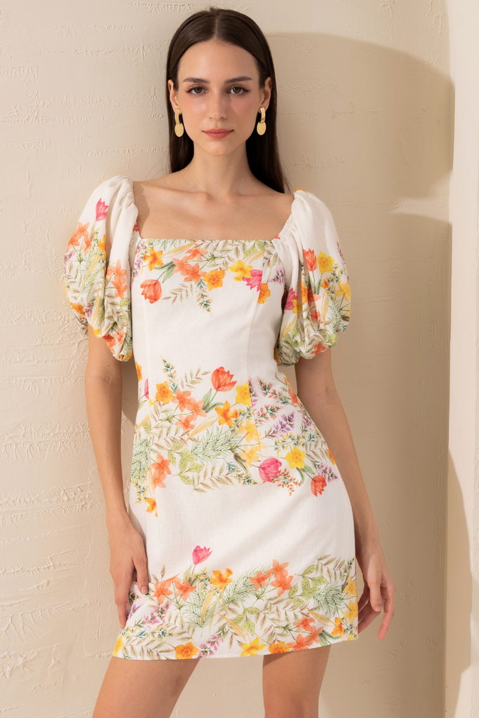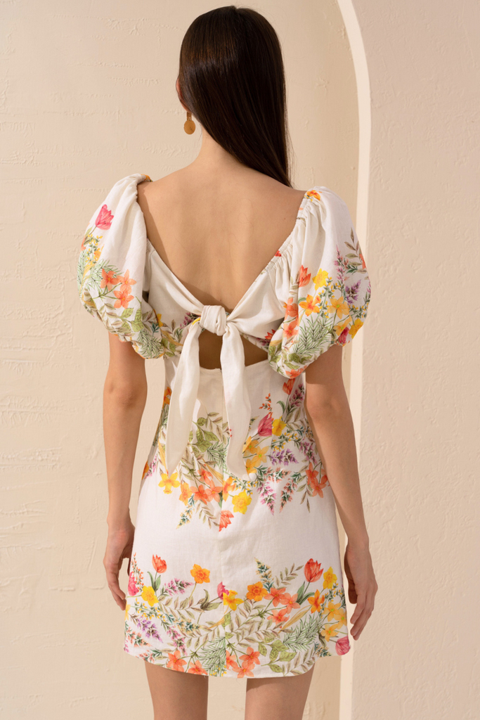 Introducing the Harley Linen Dress. Embrace bubble sleeves and a chic mini length, all tied together with a stylish back detail. Stand out in this trendy piece that's perfect for your next afternoon outing.