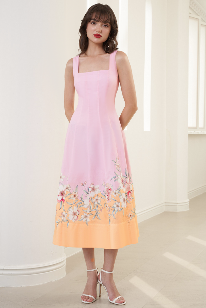 Meet the Sienna Dress—a must-have for your wardrobe. Its fitted bodice and square neckline perfectly complement a relaxed skirt. This midi dress flatters every figure, making you look and feel your absolute best.
