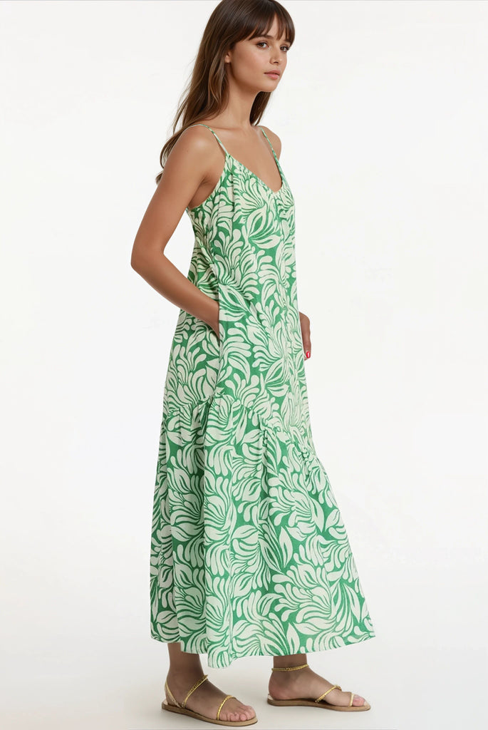Brighten your day in the vibrant Zuri maxi. This easy, comfortable dress features a V-neck and spaghetti straps, designed with a flowy, relaxed fit.